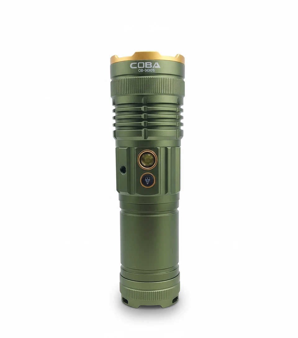 چراغ قوه حرفهای COBA مدل CB‑R18 – روشنایی در ابعاد یک کیلومتر و بدنه آلومینیومی ضد ضربه و پاور بانک