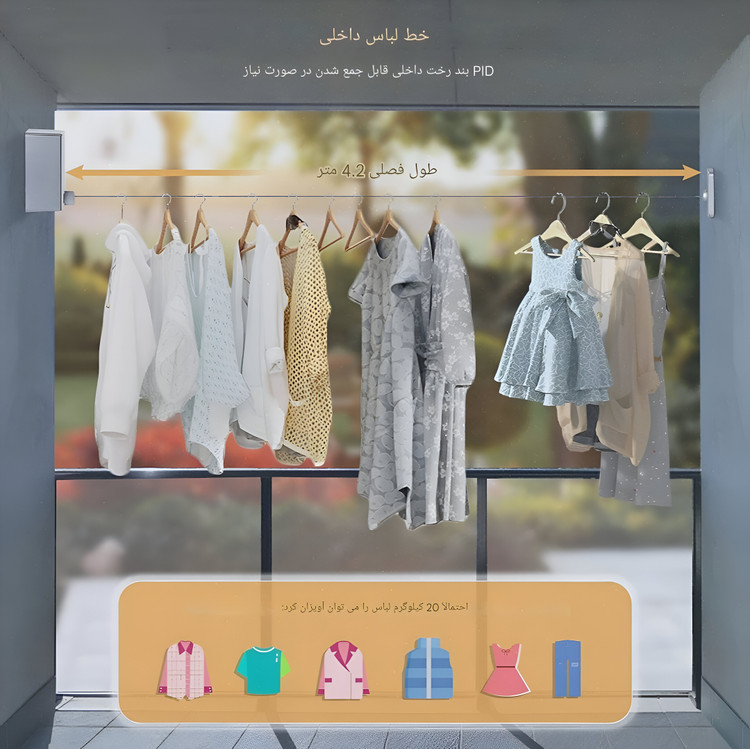 ✔️ بالکن و تراس – استفاده از فضای آزاد برای خشک کردن لباسها بدون نیاز به بندهای سنتی.