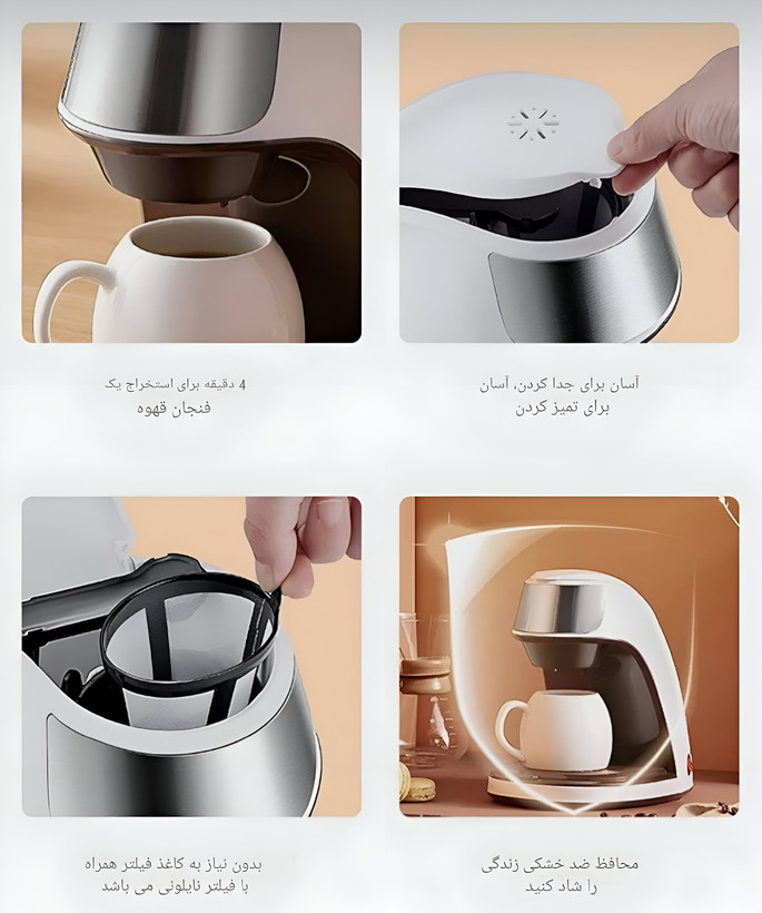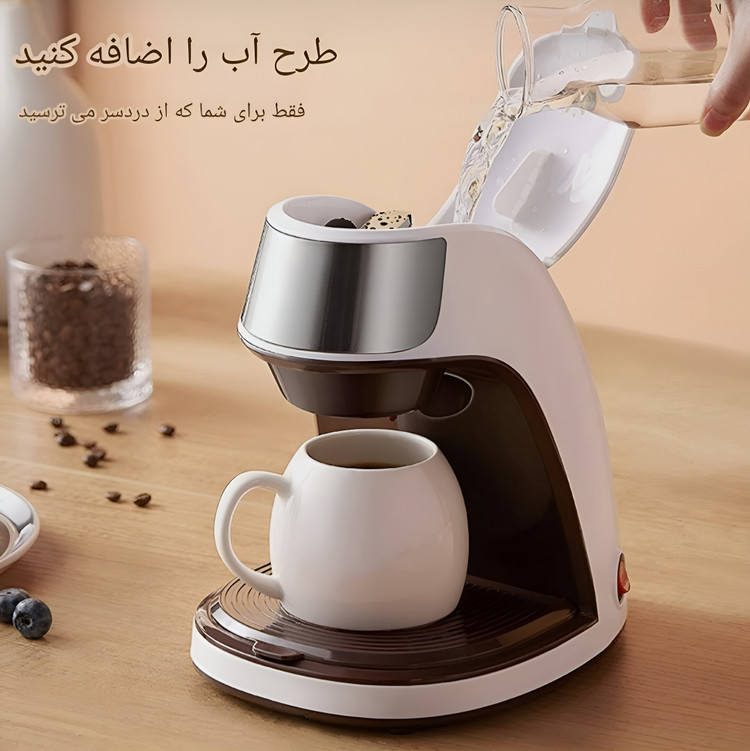 این قهوهساز دارای مخزن آبی است که به اندازه یک یا دو فنجان قهوه را فراهم میکند.