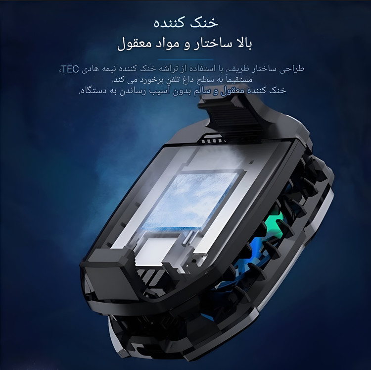 این خنککننده از یک فن توربوی پرقدرت استفاده میکند که قابلیت کاهش دمای گوشی را در کمترین زمان ممکن دارد. سیستم تهویه و دفع حرارت پیشرفتهای در این مدل به کار رفته که گرمای تولید شده توسط پردازنده و باتری را به سرعت پراکنده میکند.