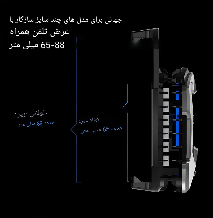 ظاهر مدرن و گیمینگ ، نورپردازی RGB برای جلوهی زیبا ، ابعاد مناسب برای انواع گوشیهای هوشمند ، سیستم گیرهای مستحکم برای نصب راحت و ایمن