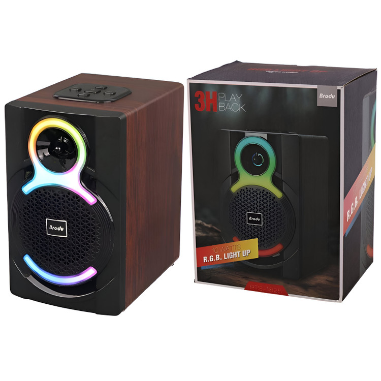 اگر به دنبال یک اسپیکر شیک، باکیفیت و دارای نورپردازی هستید، مدل BTS-1826 از برند Broda یکی از بهترین انتخابهای شماست. این اسپیکر با طراحی چوبی و نورپردازی RGB نهتنها جلوهای زیبا دارد، بلکه کیفیت صدای مطلوبی را نیز ارائه میدهد.