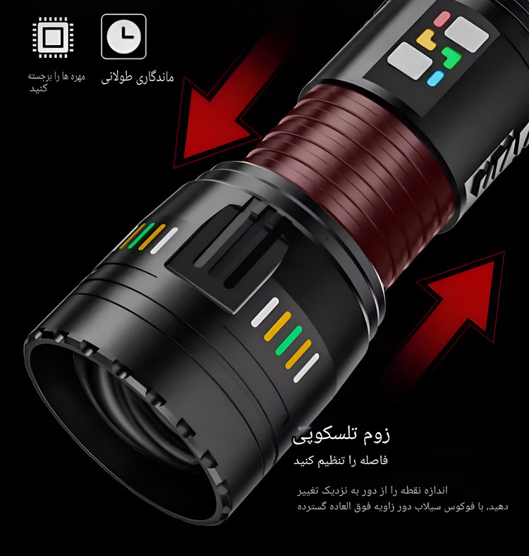 چراغ قوه چندکاره تلسکوپی با فناوری جذب نور فلورسنت