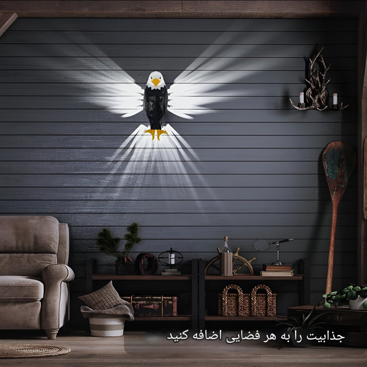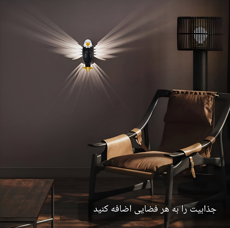✔ ایجاد حس شکوه و قدرت: عقاب نماد قدرت، شکوه و آزادی است و این چراغ همین احساس را به محیط القا میکند.