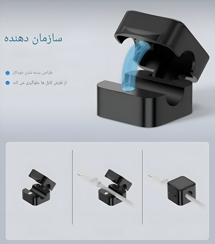 این گیرهها دارای آهنرباهای قوی هستند که کابلها را محکم نگه میدارند و مانع از افتادن یا لغزش آنها میشوند.