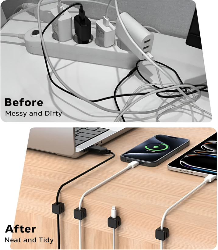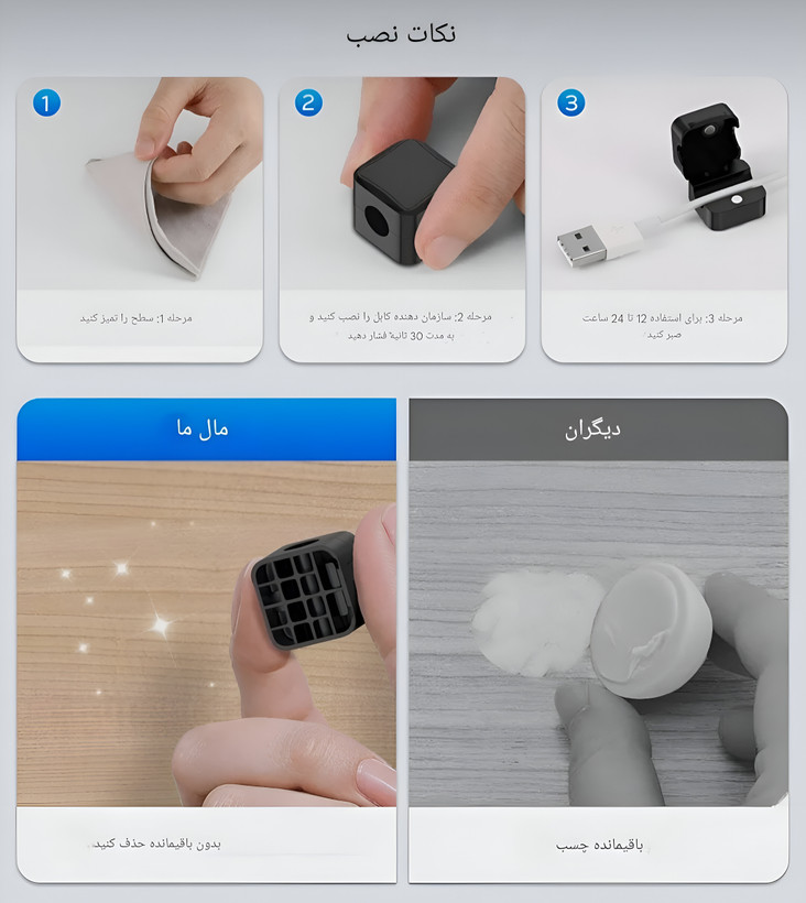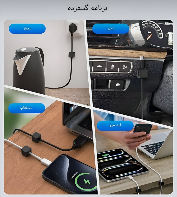 🔹 ایدهآل برای میز کار، میز تحریر، خودرو، کنار تخت و هر جایی که کابلها نیاز به نظم دارند!