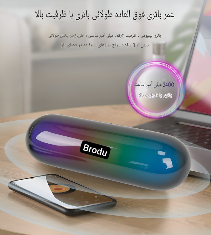 اسپیکر بلوتوثی Brodu BTS-1952 – موسیقی، نور و کیفیت در یک دستگاه!