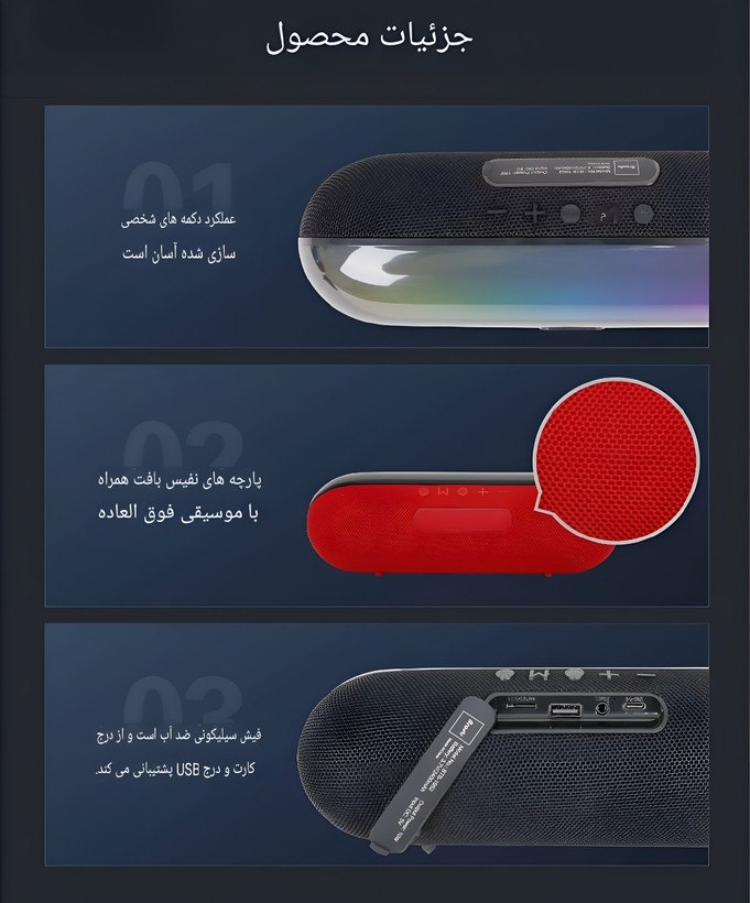 ✅ اتصال بیسیم و سیمی: پشتیبانی از بلوتوث، AUX، USB و کارت حافظه