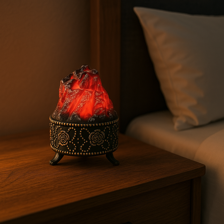 طراحی این چراغ خواب به گونهای است که شعلههای آتش را شبیهسازی میکند. نور قرمز متحرک آن با افکت شعله، حس گرما و صمیمیت یک شومینه واقعی را منتقل میکند؛ بدون خطر آتش یا مصرف انرژی بالا.