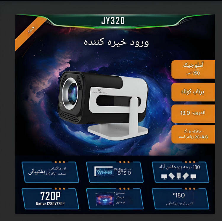 JY320 Plus انتخابی هوشمندانه برای کسانی است که بهدنبال یک دستگاه همهکاره، کاربردی و سرگرمکننده هستند. با امکانات بینظیر، قابلیت حمل آسان و بازیهای داخلی، این پروژکتور گیمینگ میتواند همراه همیشگی لحظات شیرین شما باشد.