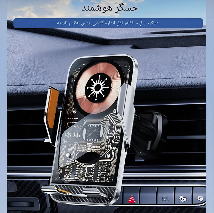پایه نگهدارنده موبایل خودرو مدل H008 با شارژ وایرلس سریع 66 وات