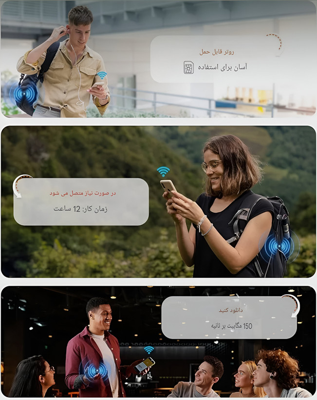 یکی از نقاط قوت بزرگ این مودم، باتری 4000 میلیآمپر ساعتشه. با یک بار شارژ میتونی تا ۱۲ ساعت کامل از اینترنت استفاده کنی. برای افرادی که دائم در حال جابجایی هستن یا دسترسی مداوم به برق ندارن، این ویژگی واقعاً ارزشمنده.