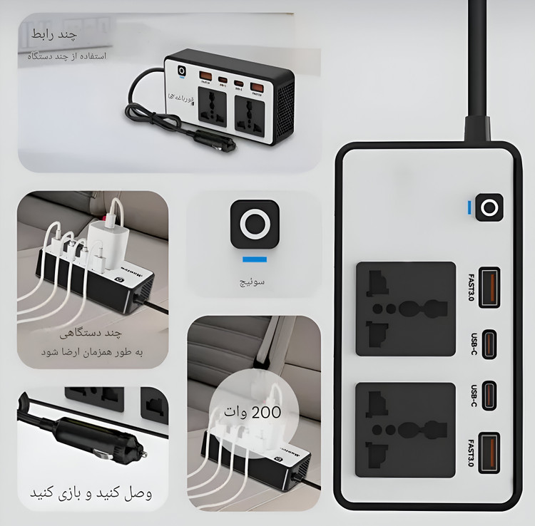 اگر اهل سفر، کمپینگ، طبیعتگردی یا حتی استفاده روزمره از خودرو باشید، حتماً با مشکل شارژ وسایل برقی یا نبود برق شهری در خودرو مواجه شدهاید. اینورتر خودرو (Car Power Inverter) وسیلهای بسیار کاربردی و ضروری است که برق 12 ولت DC خودرو را به برق 220 ولت AC شهری تبدیل میکند تا بتوانید به راحتی لپتاپ، شارژر، دوربین، اسپیکر و سایر لوازم برقی را در هر زمان و مکان استفاده یا شارژ کنید.