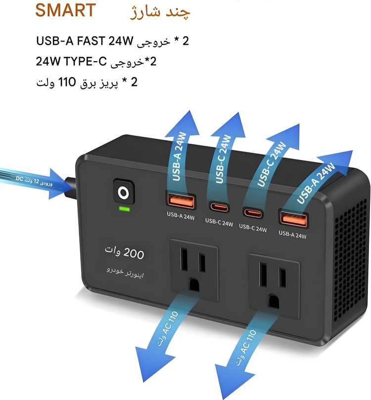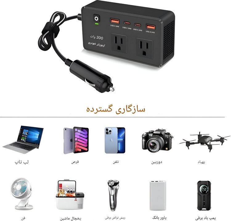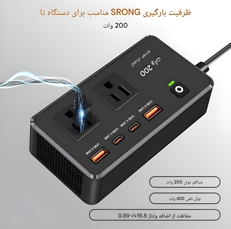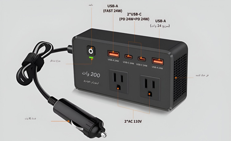توان خروجی: 200 وات (مناسب برای دستگاههای کممصرف)