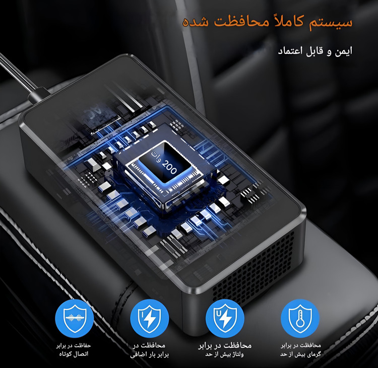 ولتاژ ورودی: 12V DC (قابل اتصال به فندکی خودرو)