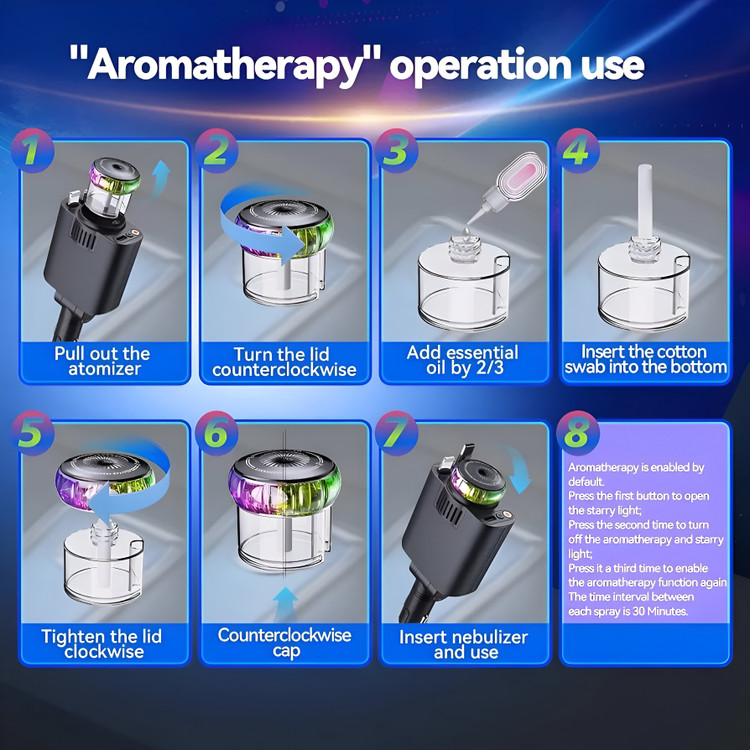 قابلیت پخش عطر بدون نیاز به آب: با فناوری نانو، عطر را بهصورت مه طبیعی در کابین پخش میکند؛ ایمن، بیصدا و موثر.