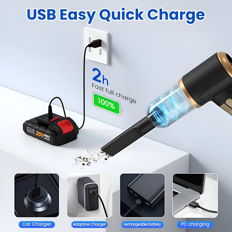 باتری 8000 میلیآمپری دستگاه از نوع لیتیومی بوده و با یکبار شارژ تا 30 دقیقه عملکرد بیوقفه دارد. این زمان برای نظافت یک خودرو کامل یا چند اتاق کفایت میکند.