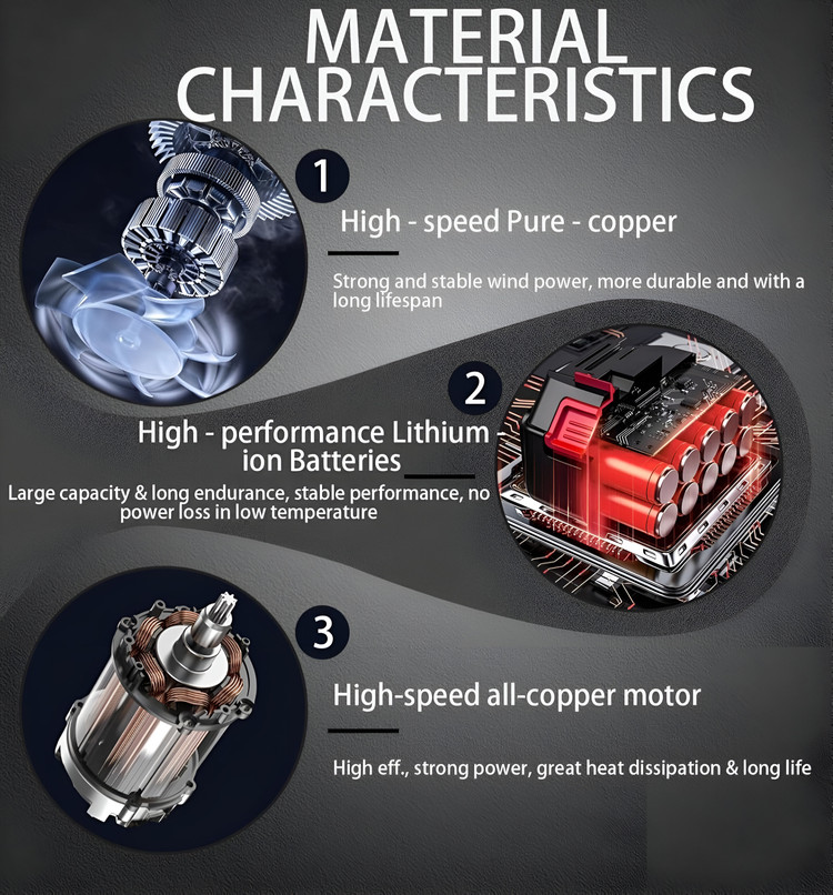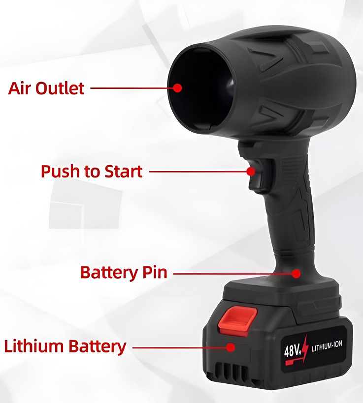 موتور پرقدرت با توان بالا: با باتری ۴۸ وات، این فن قادر است باد متمرکز و قدرتمندی تولید کند که برای زدودن گرد و غبار، خشککردن سریع سطوح، یا خنکسازی تجهیزات بسیار مؤثر است.