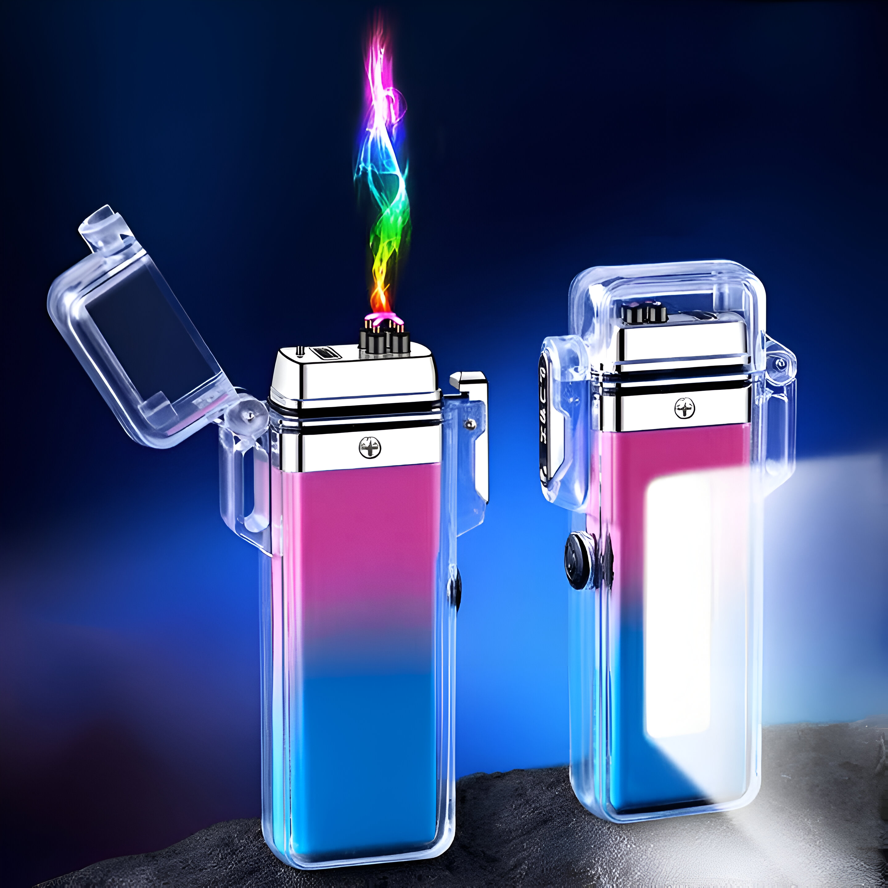 فندک الکترونیکی ضدآب دو قوس با بدنه شفاف و چراغ قوه بسیار قوی