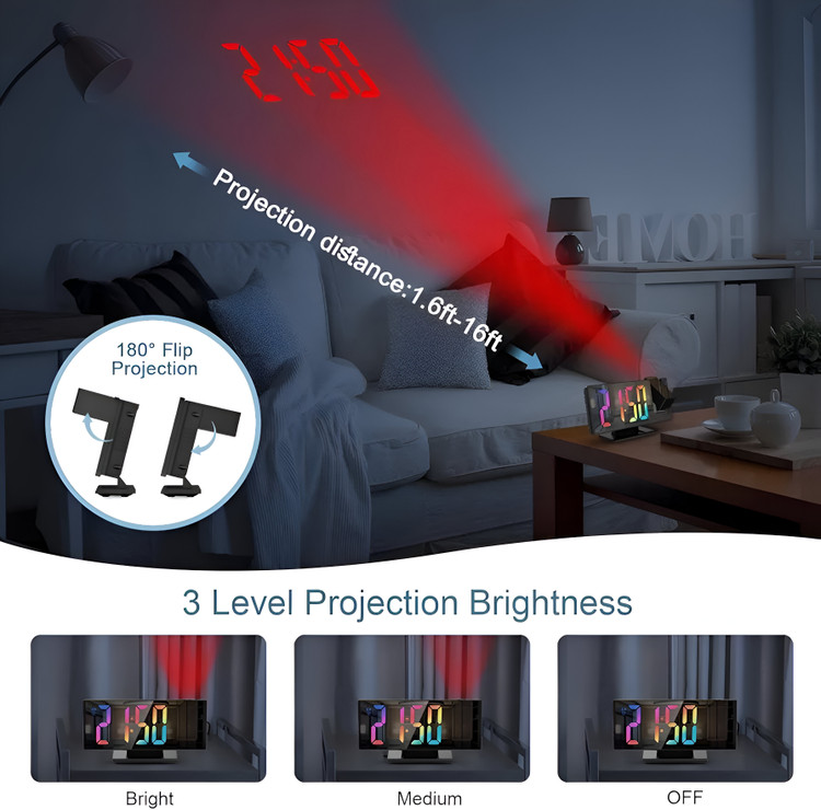 ساعت دیجیتال آینهای Gaosiio با نمایشگر RGB و پرژکتور