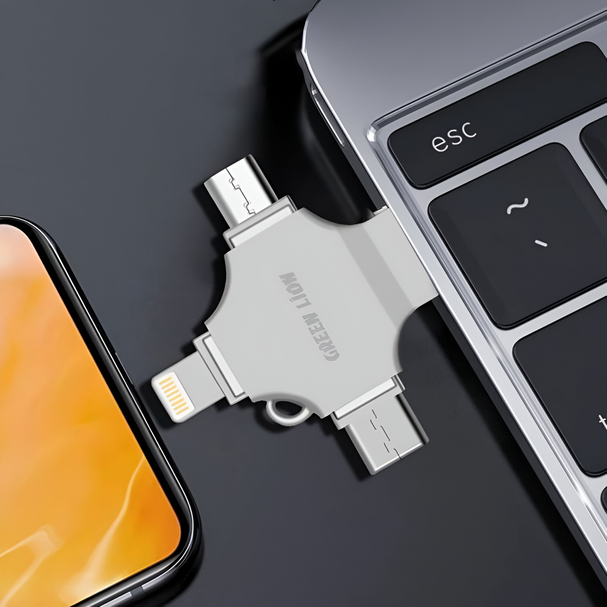 نقطه قوت اصلی این محصول، پشتیبانی از ۴ نوع درگاه مختلف است. فرقی نمیکند گوشی آیفون داشته باشید یا یک لپتاپ با پورت USB-C یا حتی گوشیهای قدیمیتر با micro USB؛ این فلش مموری بدون نیاز به هیچ تبدیلی، آماده اتصال و انتقال فایل است.