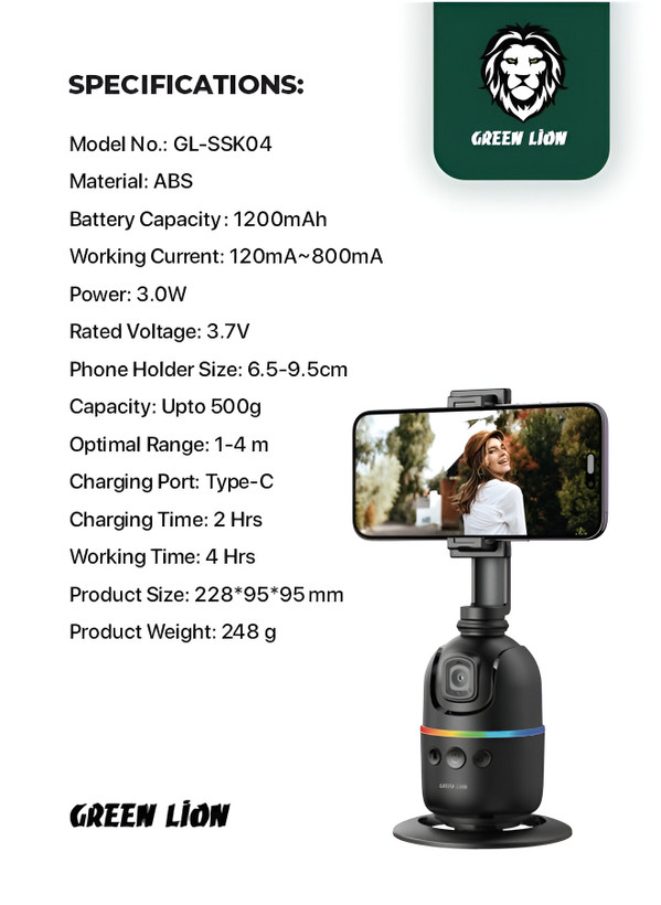 Green Lion AutoTrack Gimbal یک ابزار پیشرفته و هوشمند برای ضبط ویدئوهای بدون لرزش و با کیفیت است که مخصوص تولیدکنندگان محتوا، ولاگرها، لایو استریمرها و کاربران شبکههای اجتماعی طراحی شده است. این لرزشگیر با قابلیت چرخش ۳۶۰ درجه و ردیابی هوشمند چهره و حرکات دست، ضبط تصاویر را آسانتر از همیشه میکند.