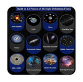 با استفاده از این پروژکتور فضای داخل اتاق استراحت خود را به یک آسمان نمای جذاب تبدیل کنید و برترین تصاویر کیهانی را در ابعاد وسیع روی سقف و دیوار اتاق خود پخش کنید. قابلیت بسیار جذاب در این محصول امکان تغییر تصاویر در حال پخش از طریق تعویض نگاتیو وجود دارد به این ترتیب که از طریق زبانه کشویی تعبیه شده در کنار بدنه پروژکتور می توان به نگاتیو تصویر در حال پخش دسترسی داشت. از سوی دیگر همراه با محصول 12 نگاتیو تصاویر کیهانی عرضه شده که با توجه به فضای اتاق یکی از آنها را می توان انتخاب و در زبانه پروژکتور قرار داد. همچنین لامپ LED قدرتمند این پروژکتور به همراه مجموعه لنزهای دقیق آن گسترده ترین و واضح ترین تصاویر کیهانی را در محیط اتاق به نمایش می گذارد. نحوه نمایش تصاویر کیهانی به دو صورت چرخشی و ثابت ممکن شده که از طریق دکمه تعبیه شده روی بدنه پروژکتور قابل تنظیم می باشد