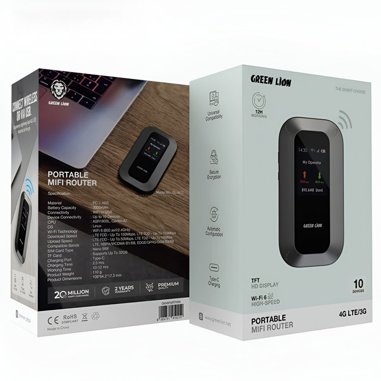 اگر بهدنبال یک مودم همراه قدرتمند، قابلحمل و با کیفیت ساخت بالا هستید، Green Lion Portable MiFi Router یکی از بهترین انتخابهای موجود در بازار است. این محصول با پشتیبانی از اینترنت 4G و فناوری Wi-Fi نسل ششم، اینترنتی سریع، پایدار و امن را در هر مکان برای شما فراهم میکند.