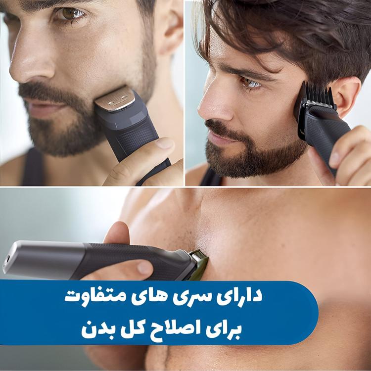 این دستگاه با ۵ سری مختلف، تمام نیازهای اصلاح سر، صورت، بینی و گردن را بهراحتی برطرف میکند: