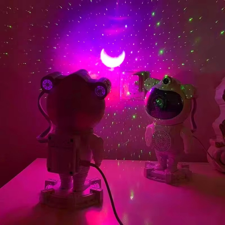 پروژکتور کهکشانی طرح فضانورد یک چراغ خواب با قابلیت پخش افکت تصویر زنده کهکشانی بر روی سقف و دیوار اتاق است که به همراه افکت لیزر ستاره ای حس یک سفر کهکشانی را قبل از خواب به شما میدهد . تلفیق همزمان تصویر زنده کهکشانی و لیزر ستاره ای جذابیت اتاق خواب شما را چندین برابر میکند. این محصول دارای ریموت کنترل نیز می باشد که میتواند نور پرژکتور یا لیزر را کم یا زیاد و یا برای روشن ماندن محصول تایمر تعریف کنید و همچنین دارای اسپیکر داخلی هست . برای روشن کردن این محصول باید از آداپتور موبایل استفاده کنید و از طریق کابل داخل بسته بندی آن را شارژ نمایید