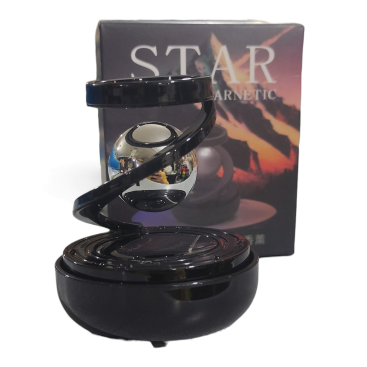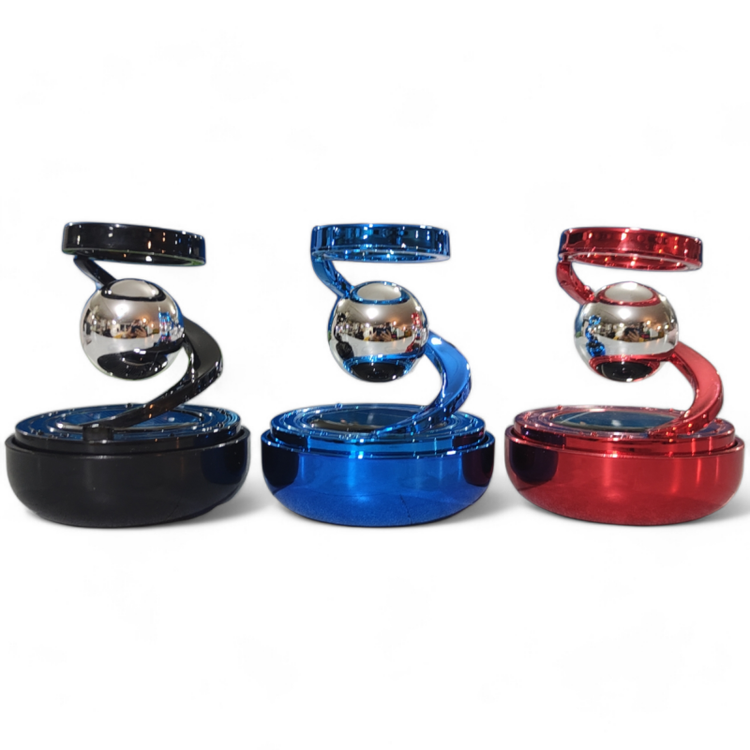 یک خوشبوکننده جذاب با نمایی جادویی که نشانگر یک گوی زیبای معلق بین پایه های چرخان است. این محصول دارای پنل خورشیدی بوده و با تابش نور خورشید شروع به چرخش می کند و یک صحنه ی جذاب و زیبا را به نمایش می گذارد.