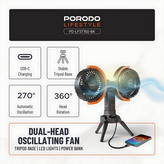 پنکه شارژی Porodo Lifestyle دو سر با چرخش و چراغ LED و پاور بانک