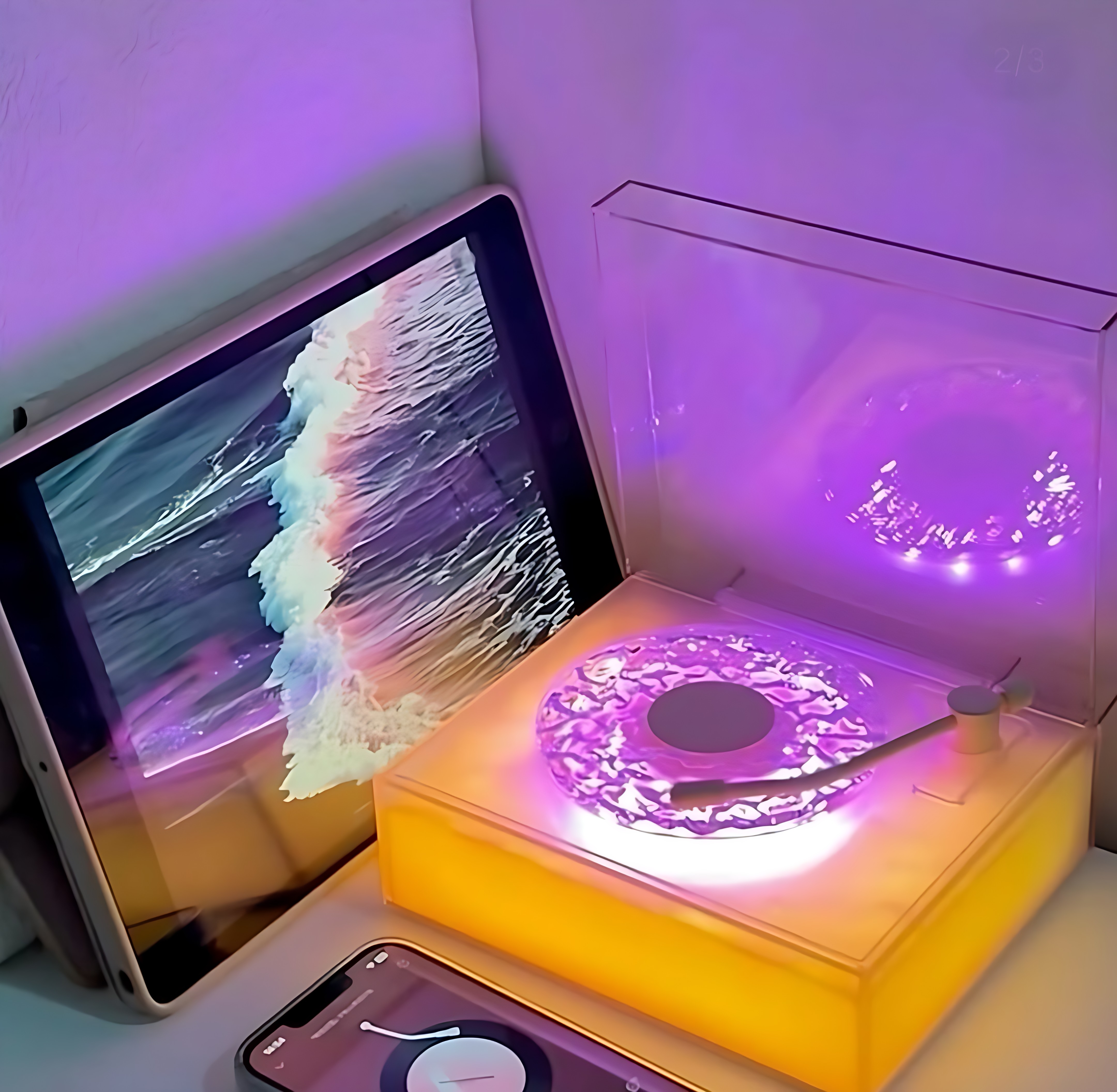 چراغ خواب و اسپیکر بلوتوثی Shanxia Vinyl Ambience مدل Round-X08 همراه با نور پردازی موجی