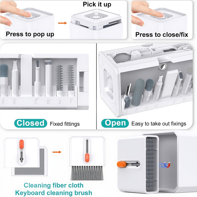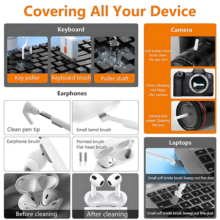این محصول با داشتن ۳۲ ابزار کاربردی، یک پک کامل برای مراقبت از وسایل دیجیتال شماست. هر ابزاری در این کیت طراحی شده تا گوشهای از مشکلات تمیزکاری دستگاههای الکترونیکی را حل کند.