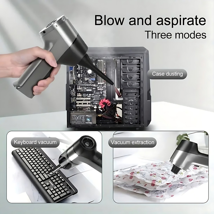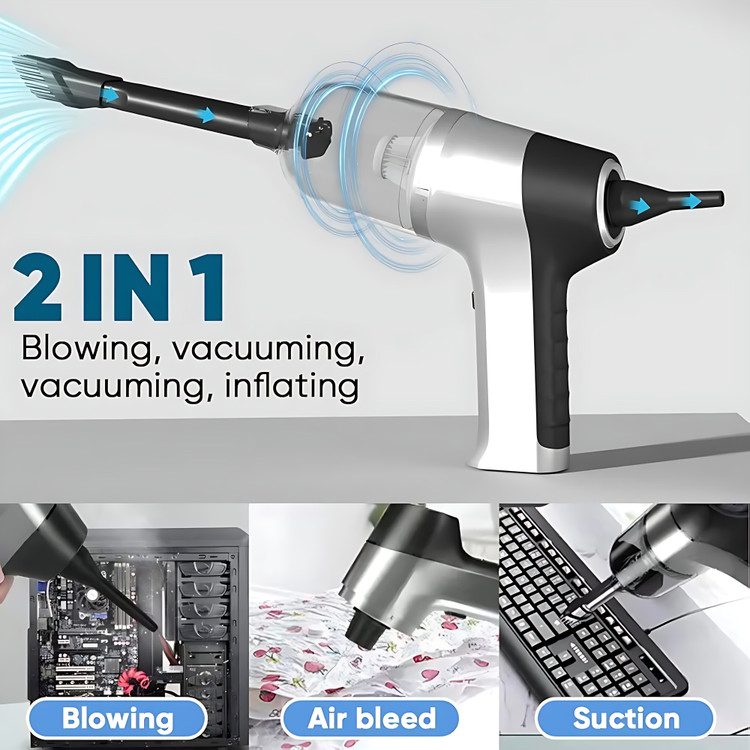 دو کاره (مکش + دمش): هم بهعنوان جاروبرقی عمل میکند و هم قابلیت دمیدن هوا برای بیرون راندن ذرات از درزها را دارد.