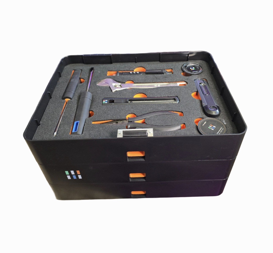 تنوع ابزارها: شامل پیچگوشتیهای مختلف، آچار فرانسه، انبردست، دمباریک، چکش، مجموعه آلن، کاتر و ابزارهای پرکاربرد دیگر.
