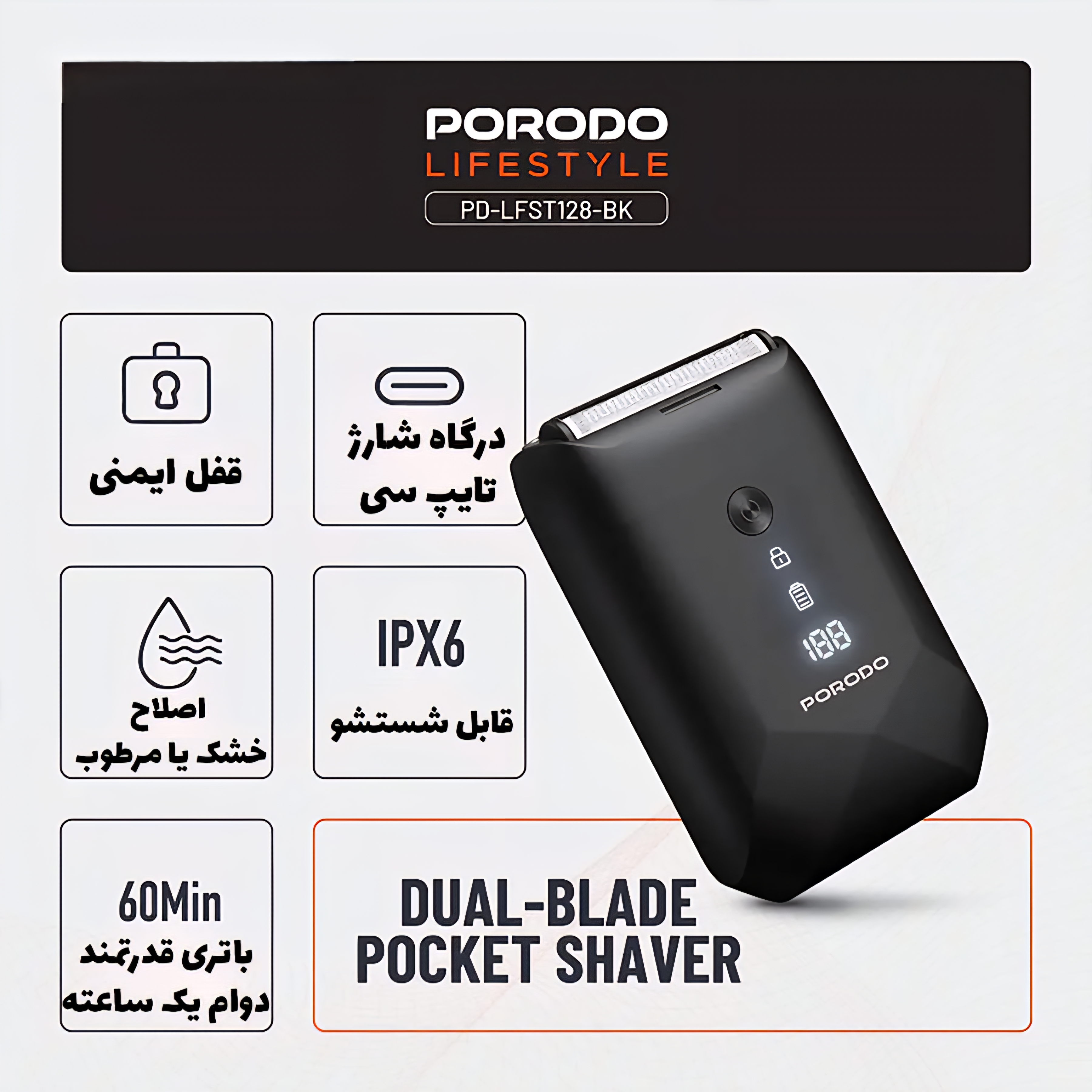 ریش تراش پرودو Porodo Dual-Blade Pocket Shaver | سبک ضد آب و مناسب سفر