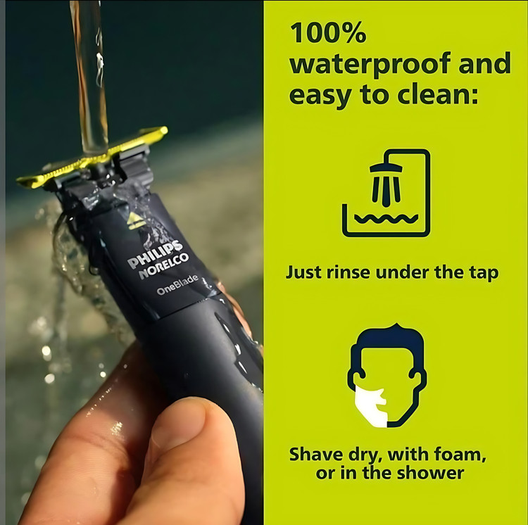 ویژگی مهم دیگر، قابلیت استفاده از دستگاه هم بهصورت خشک و مرطوب است. یعنی میتوانید از OneBlade در حمام، زیر دوش یا حتی با ژل و فوم اصلاح استفاده کنید.