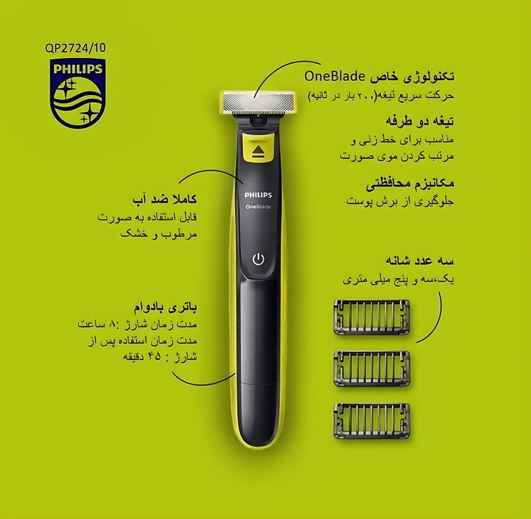 ماشین اصلاح صورت و بدن فیلیپس مدل OneBlade | بررسی تخصصی و خرید