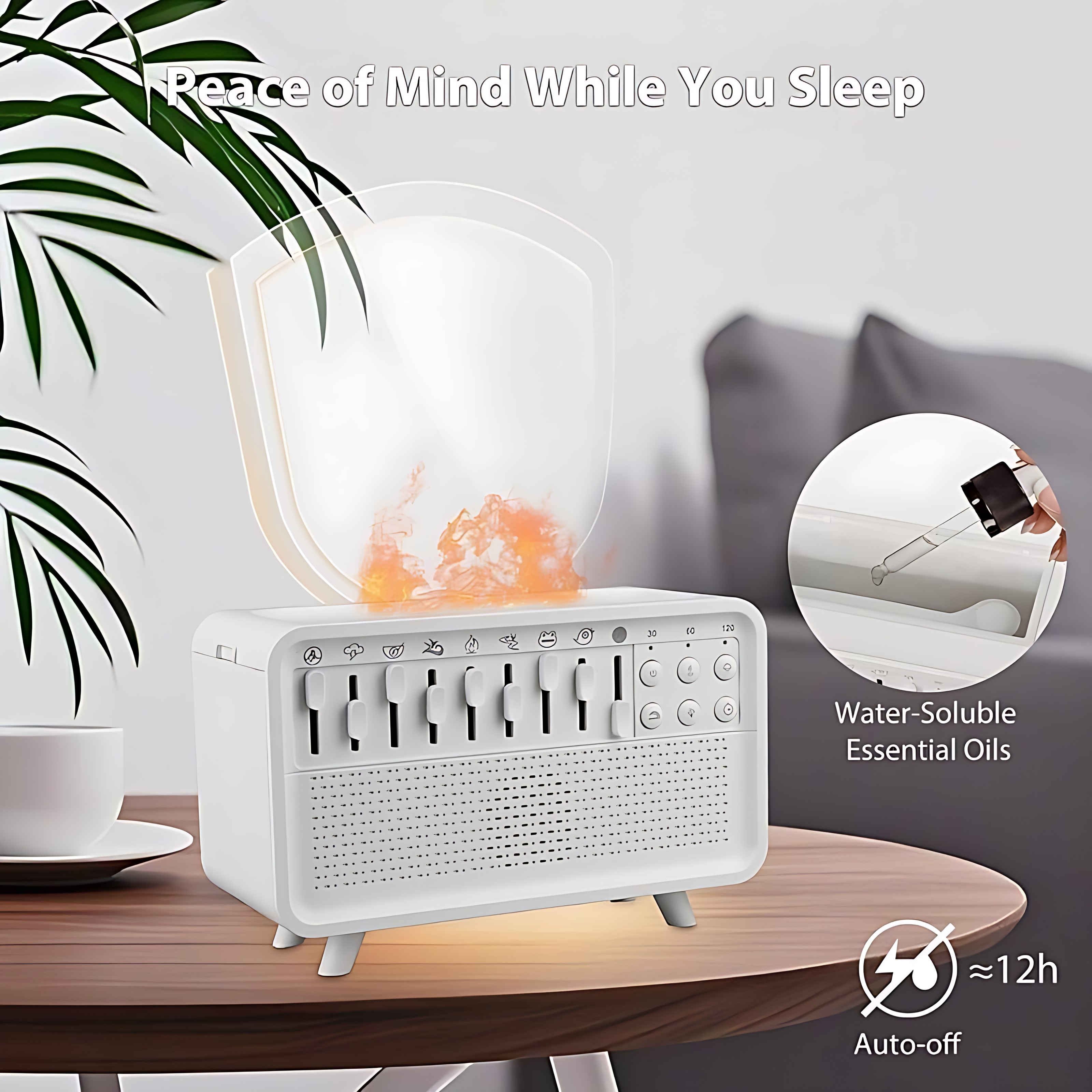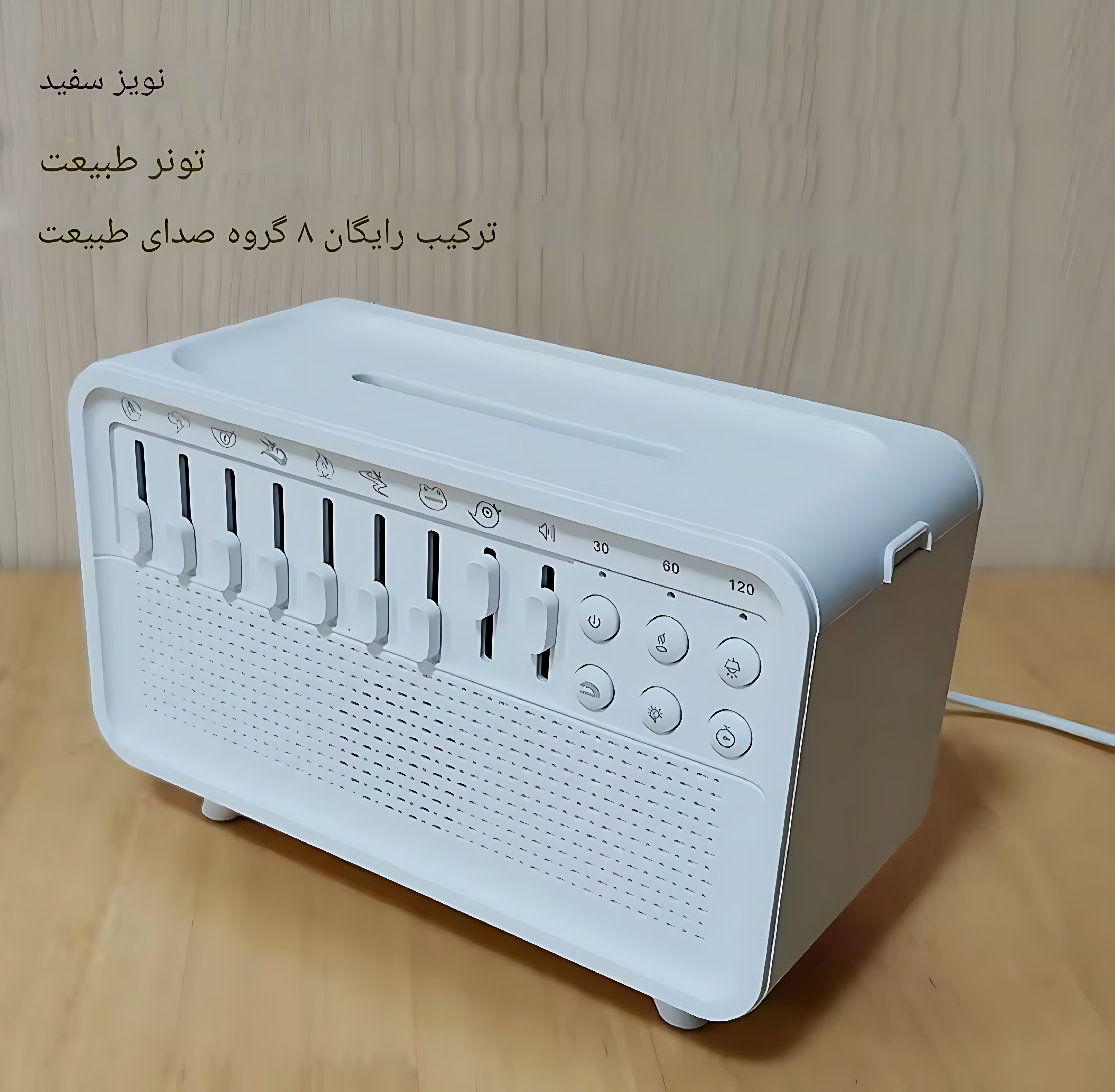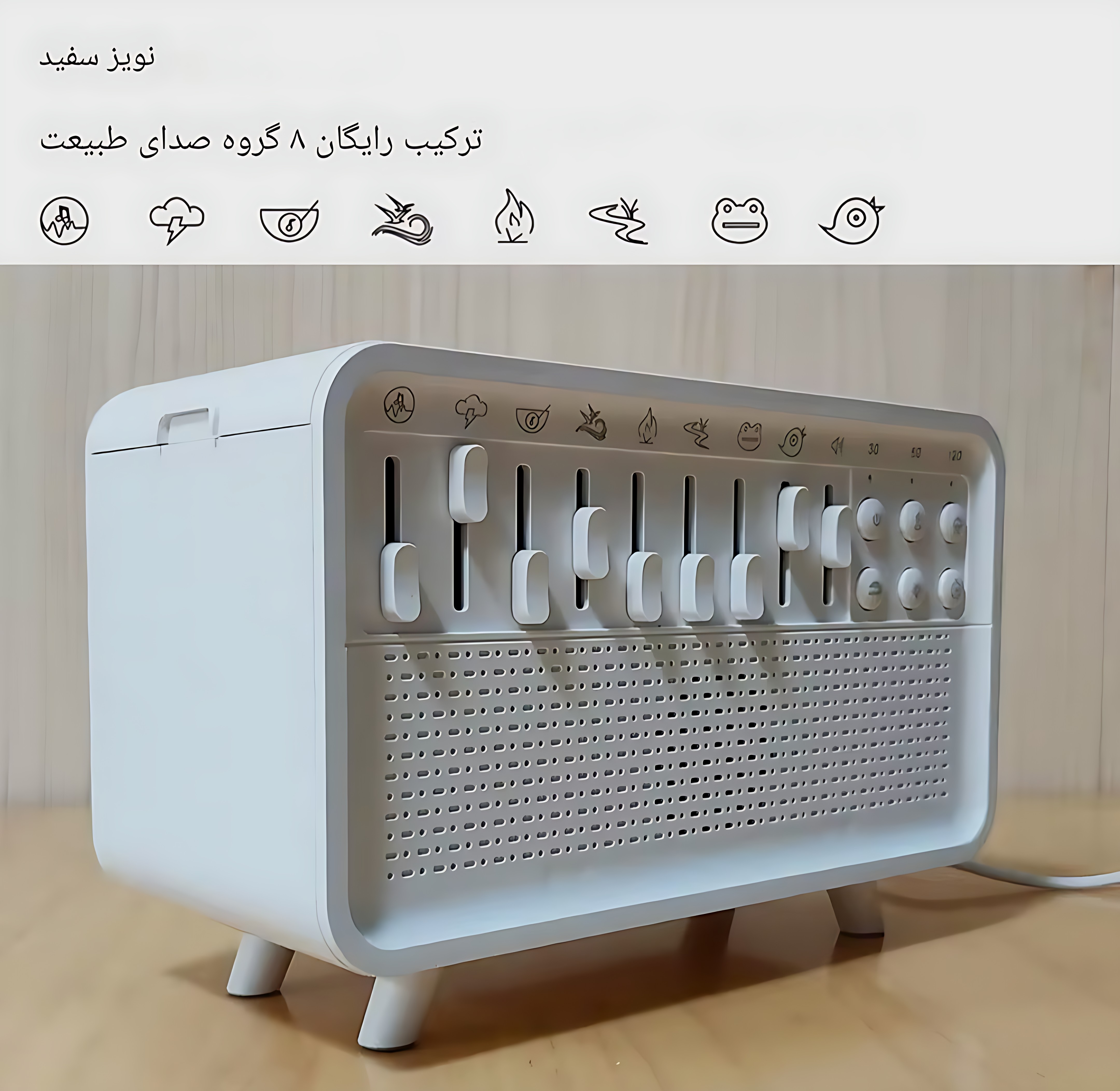 دستگاه دارای ۸ صدای طبیعی و بیش از ۲۵۰ ترکیب صوتی است که برای کمک به خواب بهتر، مدیتیشن و کاهش استرس طراحی شدهاند. همچنین میتوانید از طریق بلوتوث یا کارت حافظه، موسیقی دلخواهتان را پخش کنید.