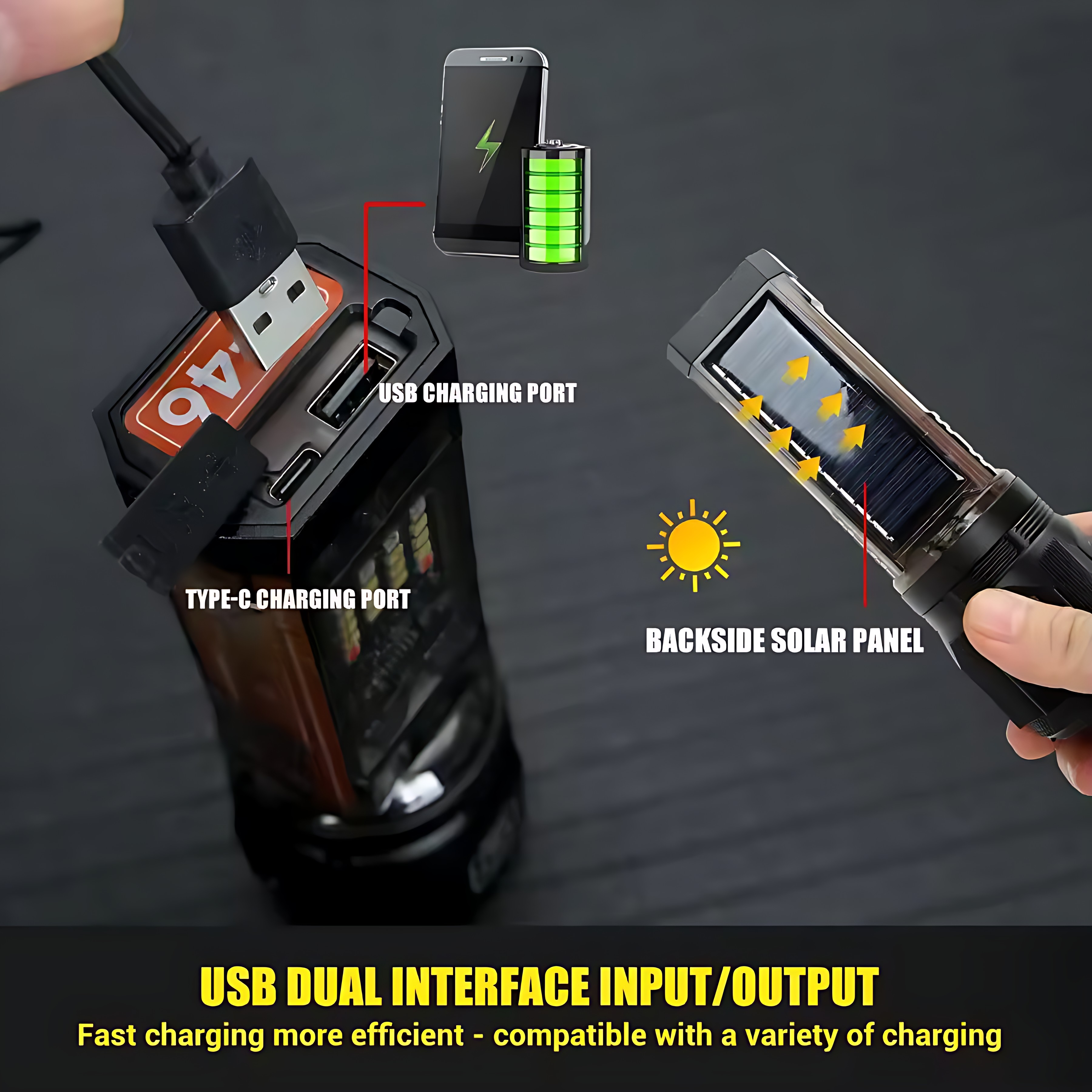 چراغ قوه حرفه ای 46-X | شارژی پاوربانک دار و مجهز به پنل خورشیدی