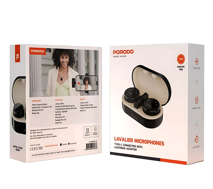 میکروفون بی سیم یقه ای سکه ای PORODO مدل LAVALIER MICROPHONES