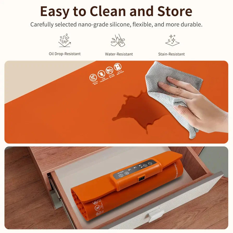 بدنه سیلیکونی انعطافپذیر این سفره، آن را سبک و قابل حمل کرده است. همچنین قابلیت تا شدن دارد و بهراحتی در کشو یا کمد آشپزخانه جای میگیرد.