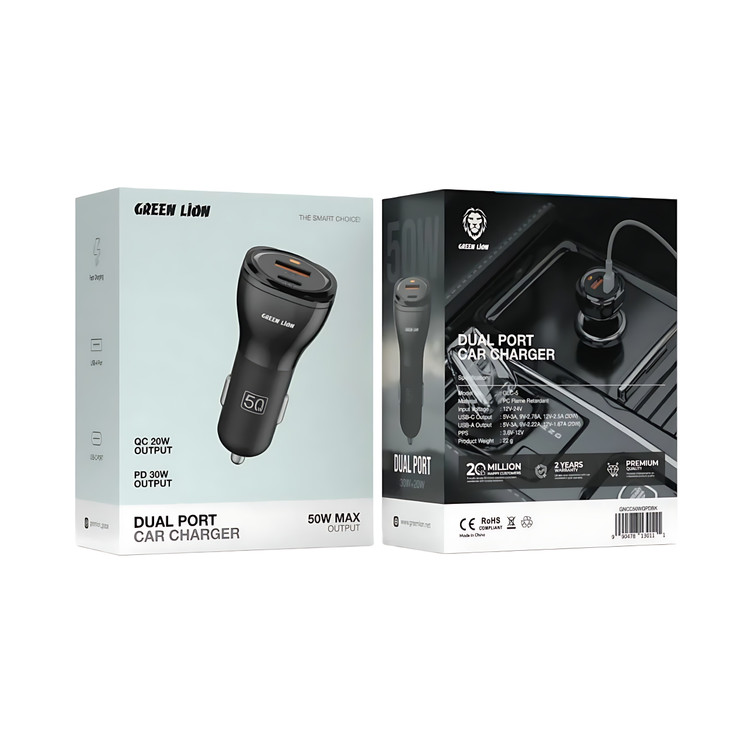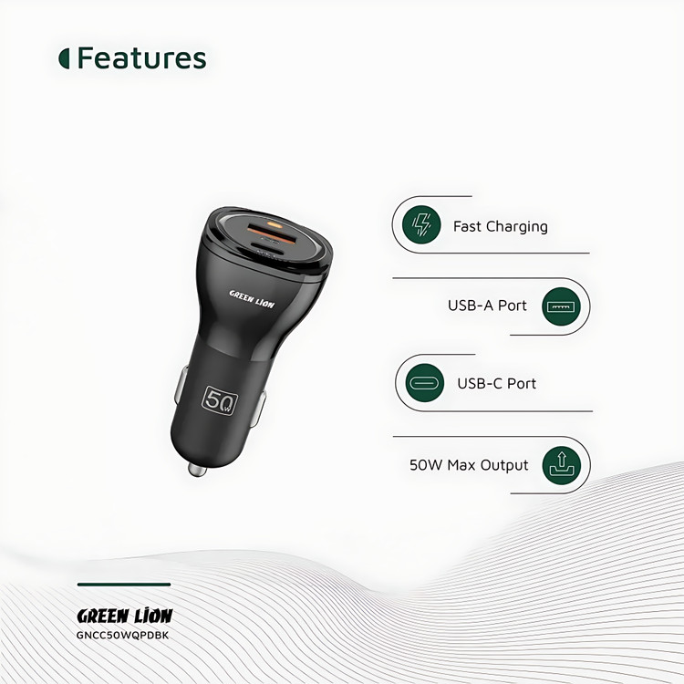 شارژر فندکی دو پورت 50 وات گرین لاین – Green Lion Dual Port Car Charger