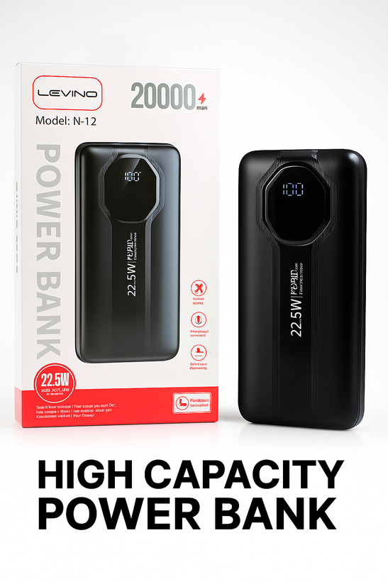 اگر به دنبال یک پاوربانک قدرتمند، با کیفیت و مناسب برای شارژ سریع دستگاههای هوشمند خود هستید، پاوربانک LEVINO مدل N-12 با ظرفیت 20000mAh یکی از بهترین گزینهها برای شماست. این پاوربانک با طراحی مدرن و پشتیبانی از فناوری شارژ سریع، میتواند چندین بار گوشی، تبلت و سایر دستگاههای شما را به راحتی شارژ کند و نگرانی شما بابت خالی شدن باتری در طول روز را برطرف سازد.