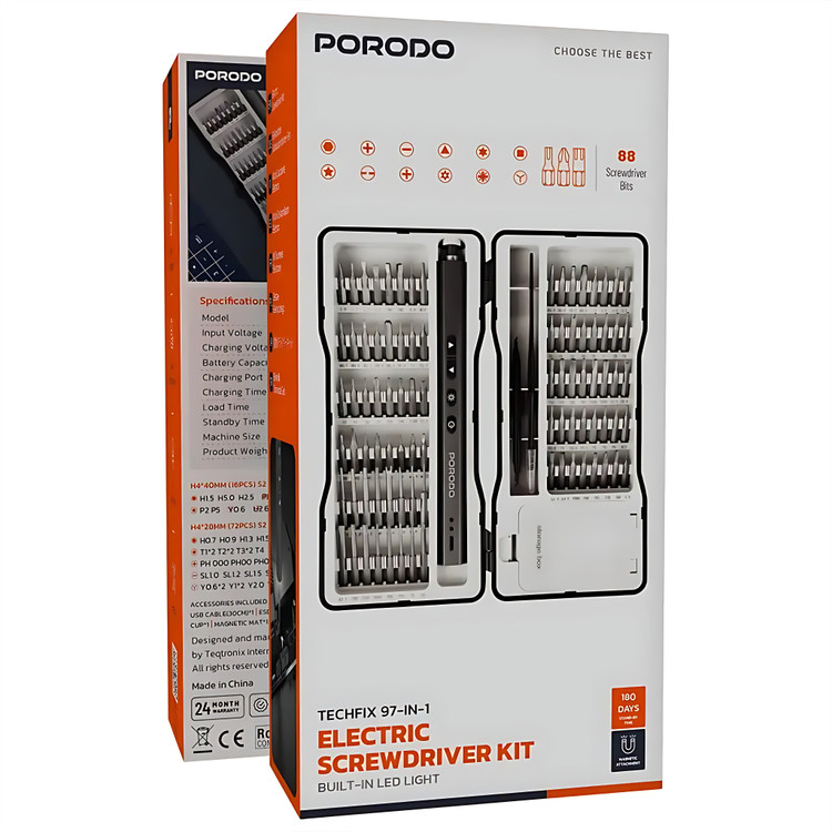 🔧 کیت پیچگوشتی برقی ۹۷ در ۱ پورودو مدل Porodo TechFix PDGTE970BK