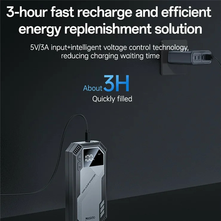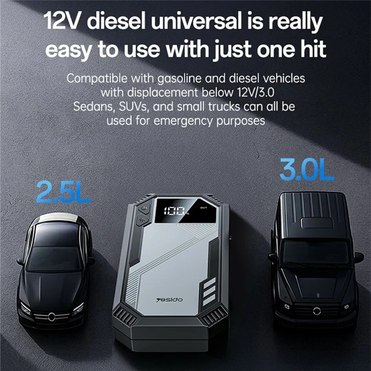 محصول YESIDO VC11 یکی از بهترین گزینهها برای این کار است. این دستگاه ترکیبی از پاوربانک پرقدرت و جامپ استارتر اضطراری خودرو است که برای خودروهای بنزینی و دیزلی تا حجم موتور ۳.۰ لیتر طراحی شده است.