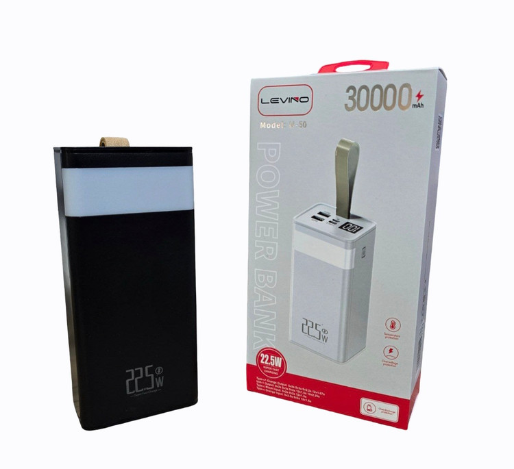 پاور بانک LEVINO مدل N-50 ظرفیت 30000 میلی‌آمپر ساعت دارای PD22.5W