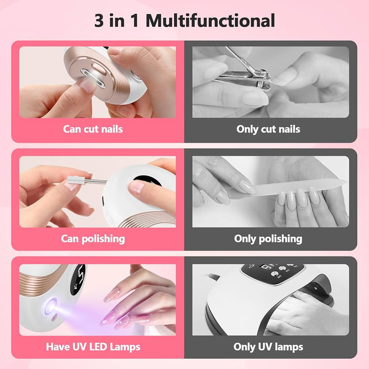 این دستگاه یک ابزار سهکاره برای رسیدگی کامل به ناخنهاست. عملکردهای اصلی آن عبارتاند از: