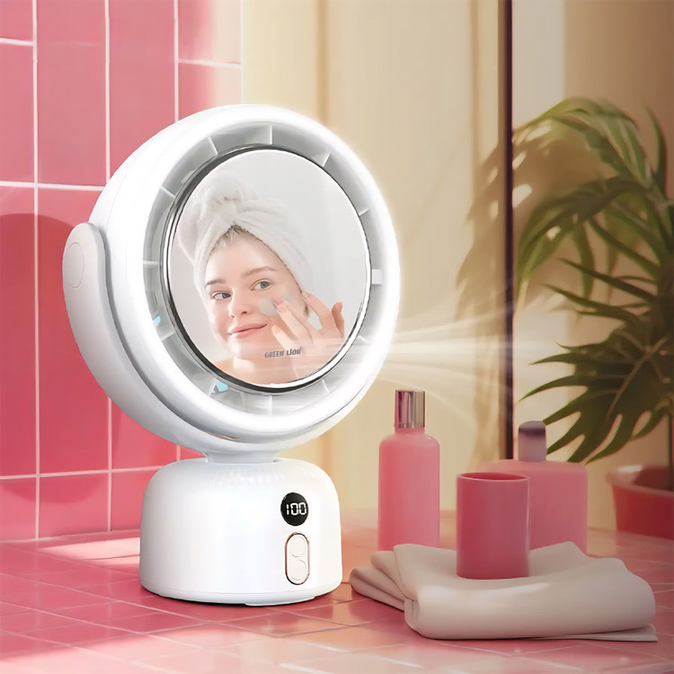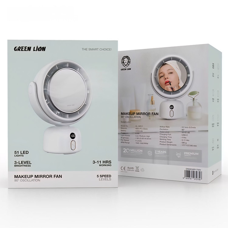 آینه آرایشی و پنکه رومیزی Green Lion مدل Makeup Mirror Fan